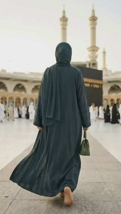 This elegant full-length abaya is designed in a rich dark green shade that reflects grace and sophistication. Made from a lightweight, soft, and flowy fabric, it drapes beautifully and moves gracefully with every step. The abaya features a modest, relaxed silhouette, ensuring comfort while maintaining a refined and stylish look.
